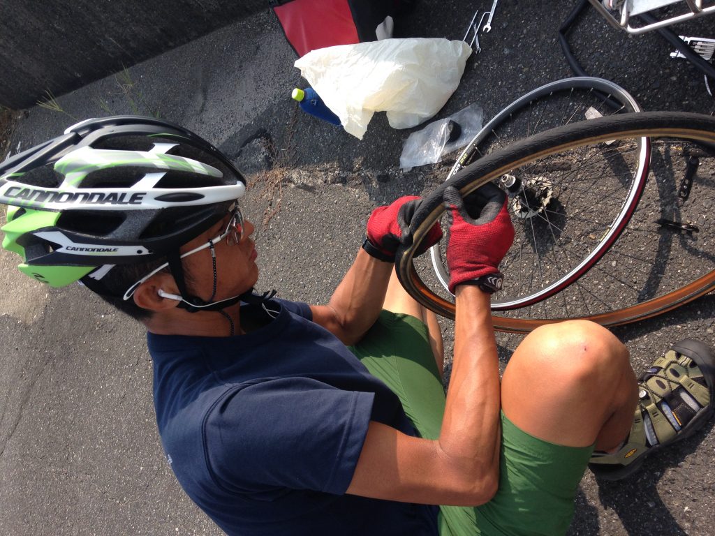 しかし、タイヤの予備はさすがに持っていない。出発前にタイヤの状態は確認していたが、連日の猛暑でタイヤも悲鳴をあげたようだ。しかも末っ子の自転車はジュニアのロードバイク。タイヤの在庫を抱えているお店などほとんど無いはずだ。しかも世間はお盆休み。営業しているお店を探すだけでも大変だ。この旅一番の大ピンチかもしれない!