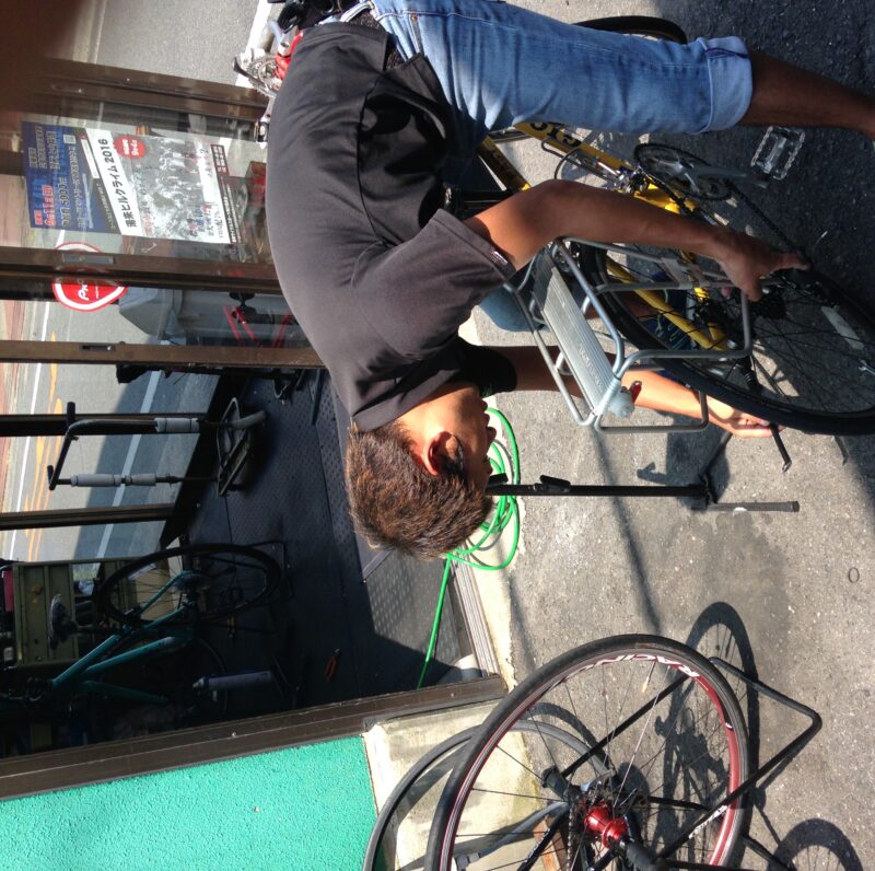 とりあえず、空気圧を下げ、荷物を全て自分の自転車に載せ換え、数キロ先の柳井市まで走る。柳井市のサイクルショップを検索し、スポーツバイクを扱っているお店へダメ元でTEL。電話が繋がり、運良く営業中だ!