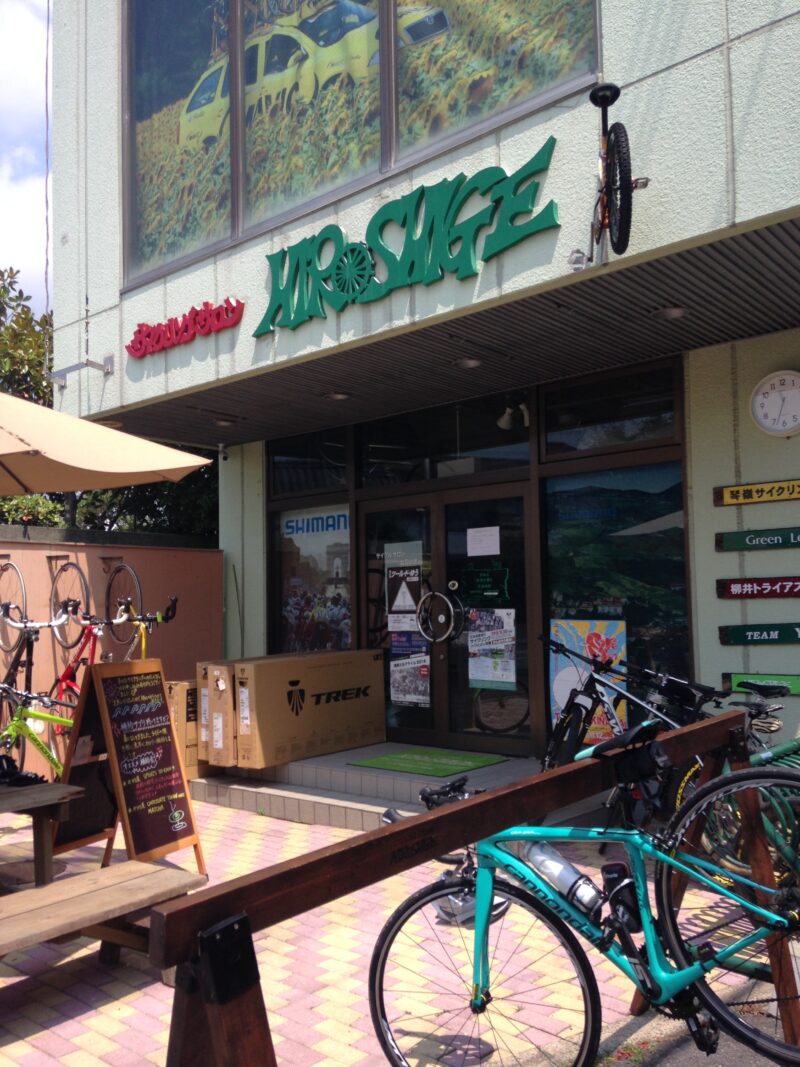 そのショップはルートから少しだけ入った柳井市中心にあるサイクリング・サロン・ヒロシゲ。柳井市はお世辞にも大きな街とは言えないが、ヒロシゲはスタッフもかなりいて、お客様で賑わっていた。ちょうどツーリングから帰ってきた人たちが押し寄せてきていたようだ。
